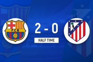 半场-巴萨暂2-0马竞总比分2-4落后 贝尔纳尔破门拉菲尼亚点射
