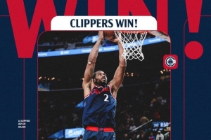 快船发布以伦纳德双手暴扣为主角的海报庆祝胜利。