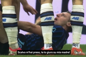 转播方:弗拉泰西用母亲发誓说被斯卡尔维尼踢到,后者说没踢到他
