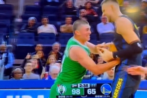 赛后采访,完成勇士首秀的波尔津吉斯接受了记者采访。谈到自己和普理查德抢球,他说道:““我不会轻易放弃那个球的。当时我们落后很多,所以我的心情本来就不太好。但其实那只是和老队友之间的一个有趣瞬间,只是开开玩笑而已。”