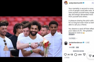 体育资讯3月25日讯 萨拉赫官宣赛季结束后离队,他的利物浦队友罗伯逊通过社交媒体送上告别。